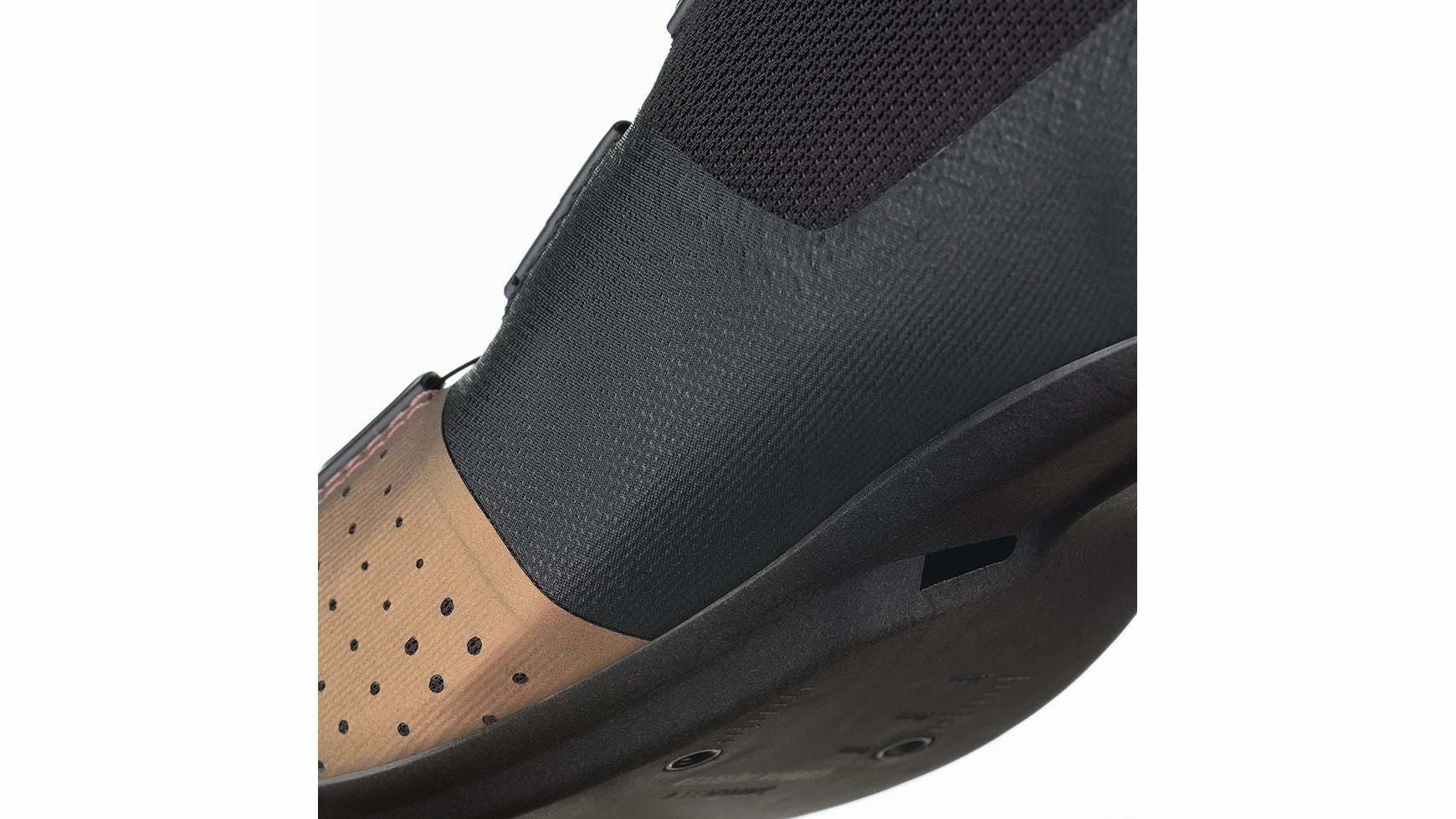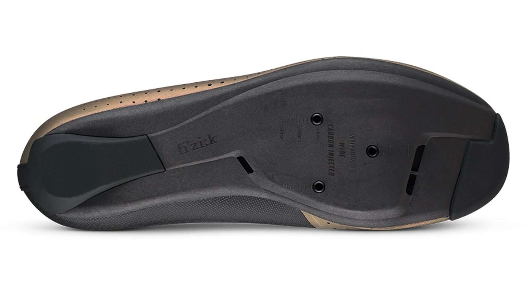 Die mäßig steife R4-Außensohle schafft zusätzlich ein ausgewogenes Verhältnis zwischen Komfort und Effizienz beim Pedalieren. Sie zeichnet sich durch ein niedrigeres Profil aus, das strukturell mit einer 15%igen Carbonfaserzusammensetzung optimiert ist und mit internen Kanälen spürbare Belüftung für effektive Temperaturregulierung bietet. Um die Treteffizienz zu optimieren und die Kniekompression zu reduzieren, ist die Stollenpositionierung im Vergleich zu herkömmlichen Sohlen etwas weiter hinten eingestellt, was insbesondere für sehr aggressive, vorwärts gerichtete Aero-Positionen essenziell ist.