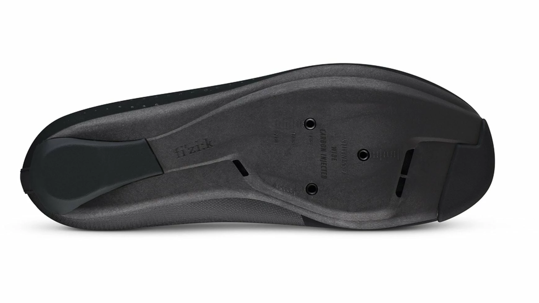 Die mäßig steife R4-Außensohle schafft zusätzlich ein ausgewogenes Verhältnis zwischen Komfort und Effizienz beim Pedalieren. Sie zeichnet sich durch ein niedrigeres Profil aus, das strukturell mit einer 15%igen Carbonfaserzusammensetzung optimiert ist und mit internen Kanälen spürbare Belüftung für effektive Temperaturregulierung bietet. Um die Treteffizienz zu optimieren und die Kniekompression zu reduzieren, ist die Stollenpositionierung im Vergleich zu herkömmlichen Sohlen etwas weiter hinten eingestellt, was insbesondere für sehr aggressive, vorwärts gerichtete Aero-Positionen essenziell ist.
